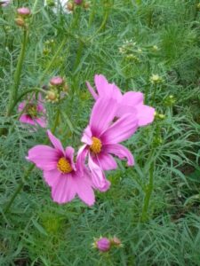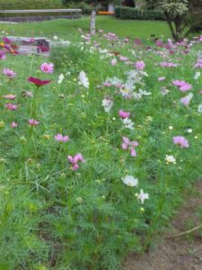 お目当てのコスモスを観に行くと、色とりどりの花が風に揺れて…と思いきや、半分くらいはまだつぼみの状態。